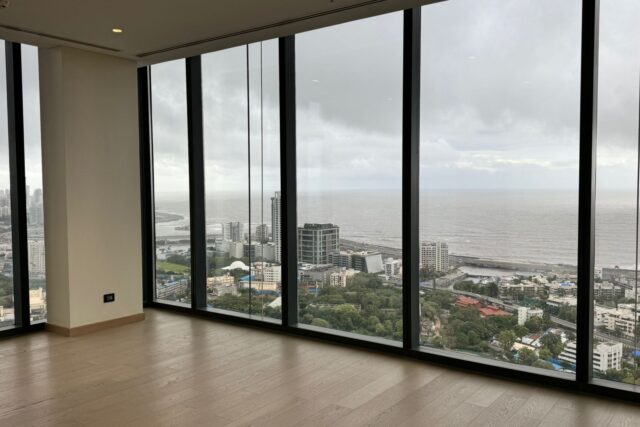 - Apartment Configurations: Offers spacious 2 BHK, 3 BHK, 4 BHK, 5 BHK, 6 BHK apartments, duplexes, and penthouses, with sizes ranging from 1,937 sq.ft. to 6,800 sq.ft. (carpet area). Each residence is designed to occupy an entire floor or more, with 80-foot-wide glass walls providing panoramic views of the Arabian Sea, Mahalaxmi Racecourse, and the Bandra-Worli Sea Link.